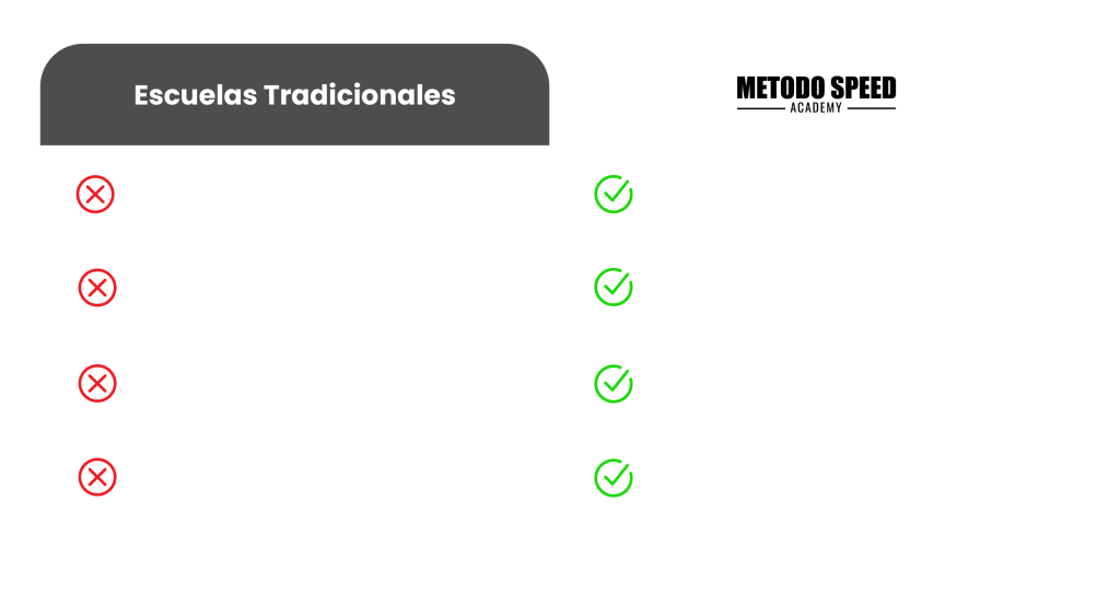 Con el Método Speed, descubrí un sistema de enseñanza completamente diferente: práctico, funcional y adaptado a las necesidades reales de aprendizaje. Me sorprendió gratamente que no se enfocara en las típicas clases llenas de reglas gramaticales o en mantener conversaciones incómodas con desconocidos en un idioma que apenas dominaba, algo que suele ser común en los cursos tradicionales de inglés.