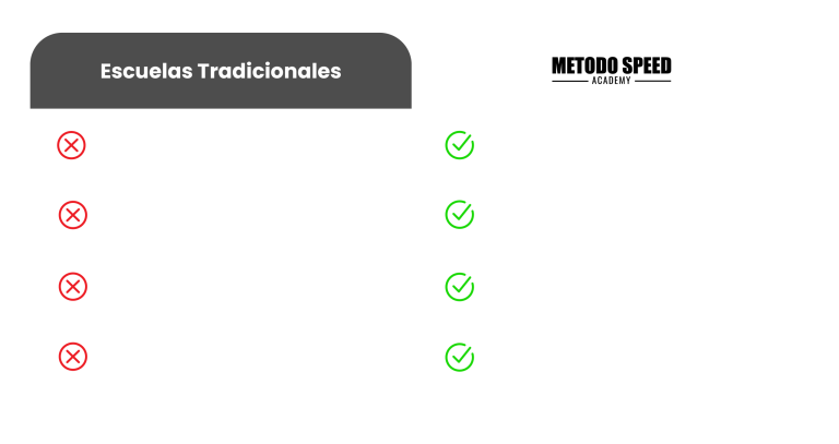 Buscando nuevas alternativas, me recomendaron el Método Speed, y desde el primer momento noté las diferencias positivas de su plataforma. Es sencilla de usar, didáctica e intuitiva. Además, ofrece una gran flexibilidad, ideal para quienes disponemos de poco tiempo. Puedes organizar tus propios horarios y avanzar a tu propio ritmo, repasando los contenidos tantas veces como lo necesites.